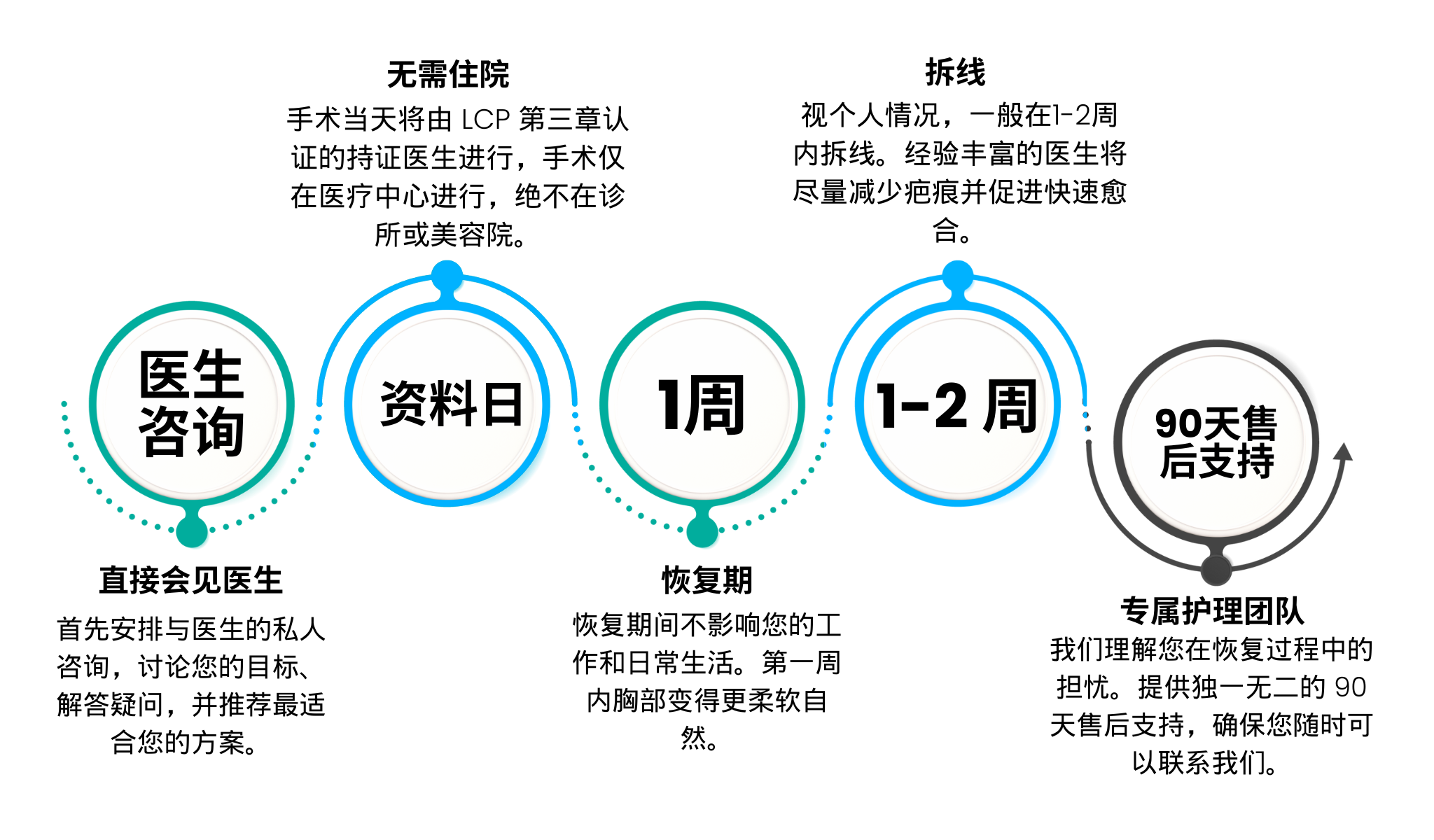 • 自然过程: 使用自身脂肪打造细腻、自然的胸部丰满度,整体过程十分自然。